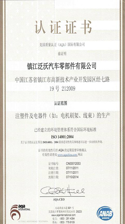 自覺地保護(hù)環(huán)境,走可持續(xù)發(fā)展的道路,已成為當(dāng)今世界的主題。隨著我國經(jīng)濟(jì)的發(fā)展,環(huán)境問題越來越受到社會各界的廣泛重視。實(shí)施ISO14001國際標(biāo)準(zhǔn)是順應(yīng)經(jīng)濟(jì)一體化的必然趨勢,是提升企業(yè)形象、改善環(huán)境管理狀況的又一戰(zhàn)略舉措。本著保護(hù)環(huán)境,造福人類的宗旨,為不斷提高企業(yè)員工的環(huán)境意識、管理和操作技能。經(jīng)過公司各部門全體員工的共同努力,完成了策劃、建立、運(yùn)行、內(nèi)審、管理評審、外部審核等相關(guān)工作,于7月順利通過環(huán)境管理體系認(rèn)證,通過 ISO14001認(rèn)證,是泛沃公司發(fā)展的重要里程碑,它提升了泛沃在國際汽車零部件制造行業(yè)的競爭力。